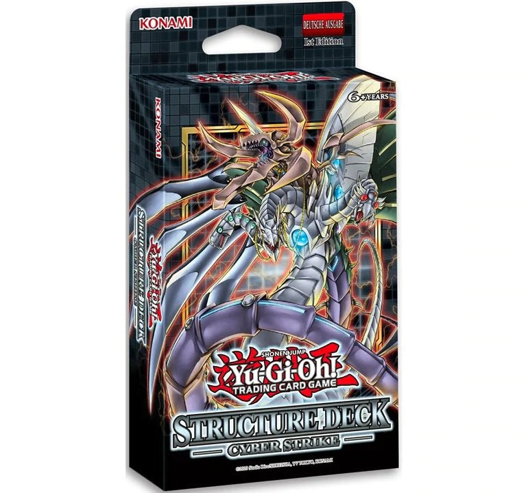 Structure Deck: Cyber ​​Strike verbessert beide Strategien von Zane Truesdale aus dem Yu-Gi-Oh! GX Anime! Dies ist eines der am besten anpassbaren Structure Decks. Du kannst dich auf Zanes ursprüngliche Cyber ​​Drache Fusionsstrategie, seine Drachen-basierte Cyberfinsternis-Strategie, konzentrieren oder beide zusammen in einem einzigen Deck, wie in den späteren Staffeln von Yu-Gi-Oh! GX spielen.