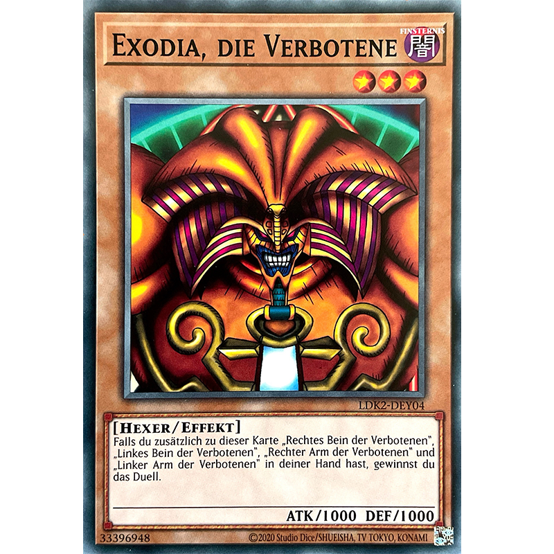 Falls du zusätzlich zu dieser Karte „Rechtes Bein der Verbotenen“, „Linkes Bein der Verbotenen“, „Rechter Arm der Verbotenen“ und „Linker Arm der Verbotenen“ in deiner Hand hast, gewinnst du das Duell.