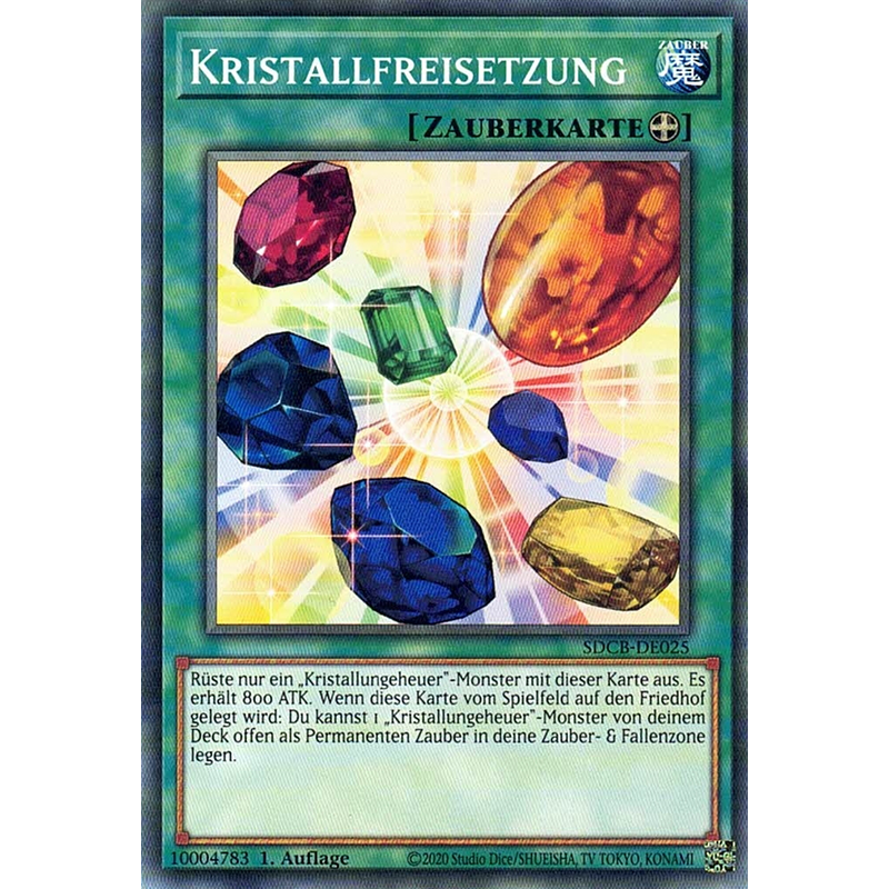 Rüste nur ein „Kristallungeheuer“-Monster mit dieser Karte aus. Es erhält 800 ATK. Wenn diese Karte vom Spielfeld auf den Friedhof gelegt wird: Du kannst 1 „Kristallungeheuer“-Monster von deinem Deck offen als Permanenten Zauber in deine Zauber- & Fallenzone legen.