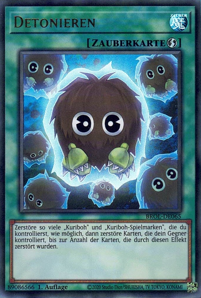 Zerstöre so viele „Kuriboh“ und „Kuriboh-Spielmarken“, die du kontrollierst, wie möglich, dann zerstöre Karten, die dein Gegner kontrolliert, bis zur Anzahl der Karten, die durch diesen Effekt zerstört wurden.