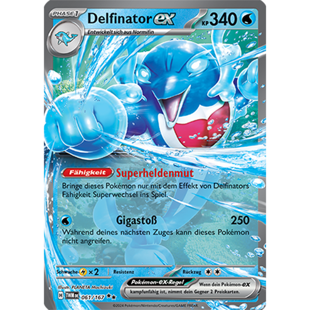 Bei dieser Karte handelt es sich um eine Delfinator ex Karte aus dem Set Maskerade im Zwielicht.