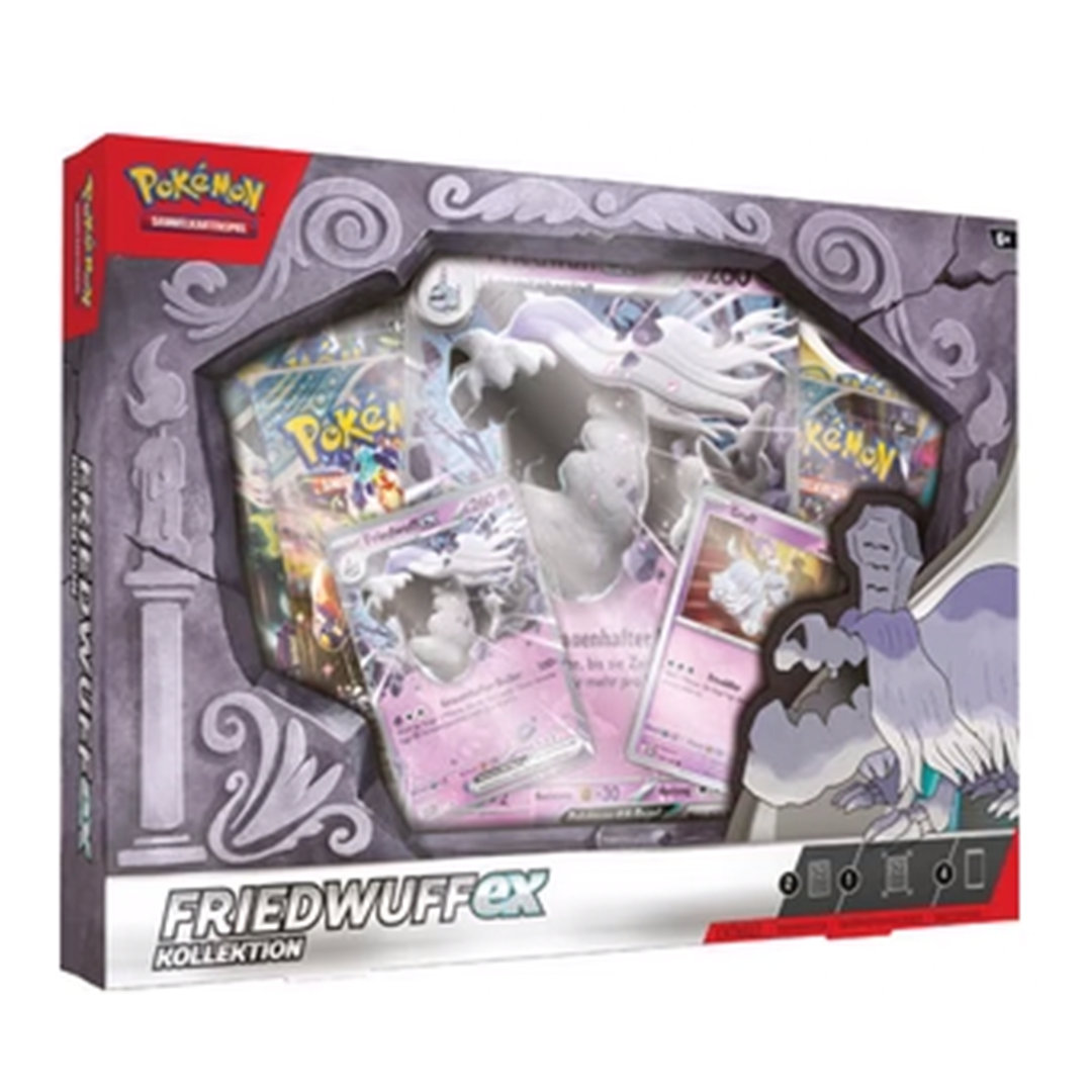 Friedwuff mag ein bisschen unheimlich aussehen, aber wenn du es erstmal besser kennengelernt hast, werdet ihr für immer Freunde sein. Hole das Beste aus diesem ewigen besten Freund mit diesem Set heraus, das eine holografische Promokarte mit Friedwuff als mächtiges Pokémon-ex und eine holografische Karte mit Gruff enthält. Für alle Fans des Geisterhund-Pokémon ist dies die ultimative Kollektion. Und bei deinem Spaziergang durch die ebenso enthaltenen Boosterpacks des Pokémon-Sammelkartenspiels wirst du noch mehr Spaß haben.