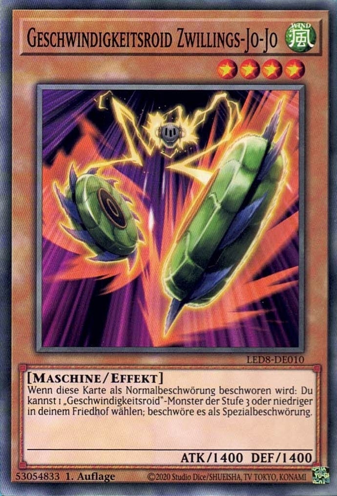 Wenn diese Karte als Normalbeschwörung beschworen wird: Du kannst 1 „Geschwindigkeitsroid“-Monster der Stufe 3 oder niedriger in deinem Friedhof wählen; beschwöre es als Spezialbeschwörung.