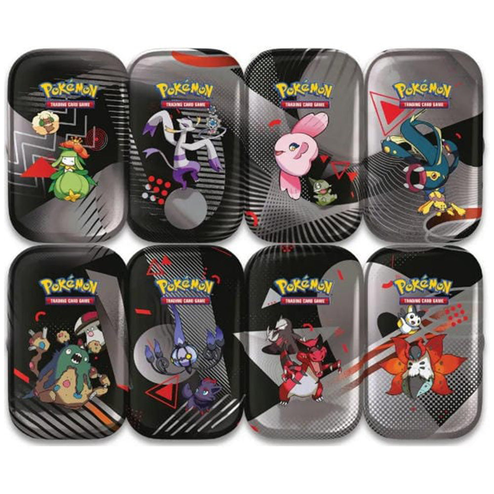 Füge deiner Karmesin & Purpur – Schwarze Blitze und Karmesin & Purpur – Weiße Flammen Sammlung noch mehr Karten hinzu und erhalte mit jeder schönen Mini-Tin-Box eine tolles Sammlerstück. Es gibt insgesamt acht Mini-Tin-Box-Designs und jede Mini-Tin-Box hat ihre eigene Illustration, sodass alle zusammen zu einem großen Bild kombiniert werden können.